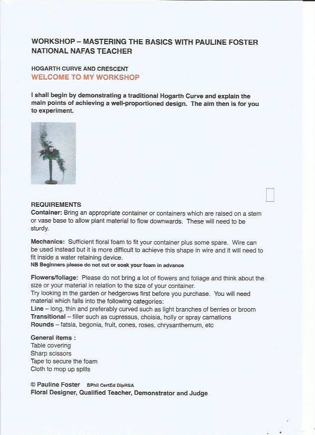 Our next workshop will take place on 12 February 2026. This will be led by Pauline Foster of Gainsborough and the title is ‘Hogarth Curve/Crescent.